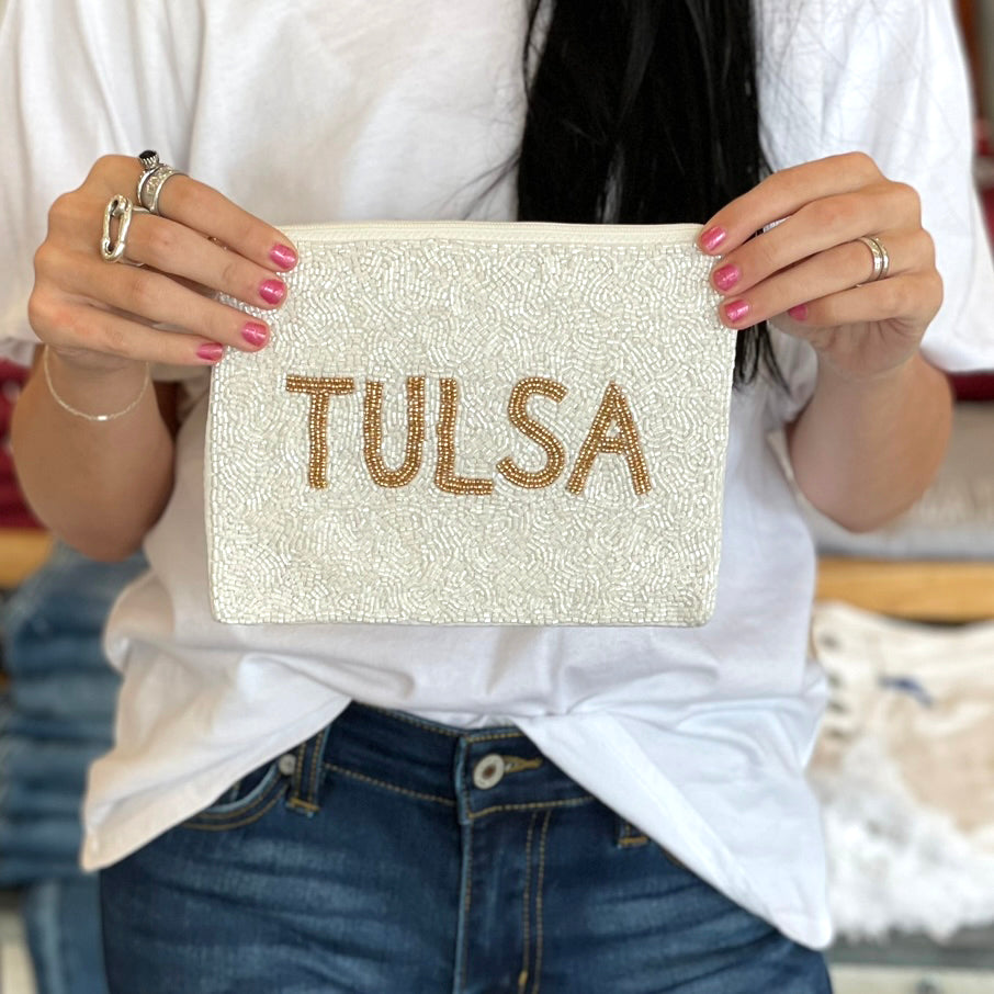 Add a University of Tulsa seed bead pouch to your gameday look. These bags are the perfect addition to your clear game day bag. These bags feature a ring on each side and can be carried as a purse. Each bag measures 6x7.5” $36