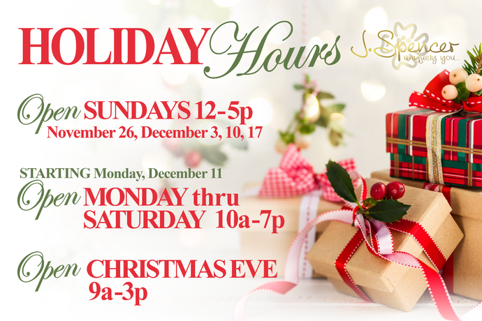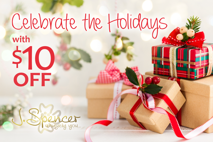 Save $10 on Holiday Shopping! Celebrate the Holidays with $10 Savings at J. Spencer Now through Sunday November 30th shop any J. Spencer store and ...