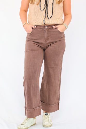 High Waist Pleated Wide Leg Dress Pants in Burgandy