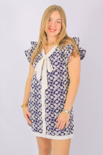 High Waist Pleated Wide Leg Dress Pants in Navy