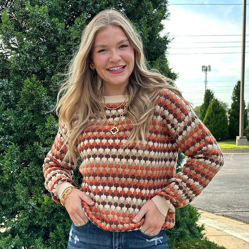 Entro Iris Striped Zip Front Top in Brown/Cream