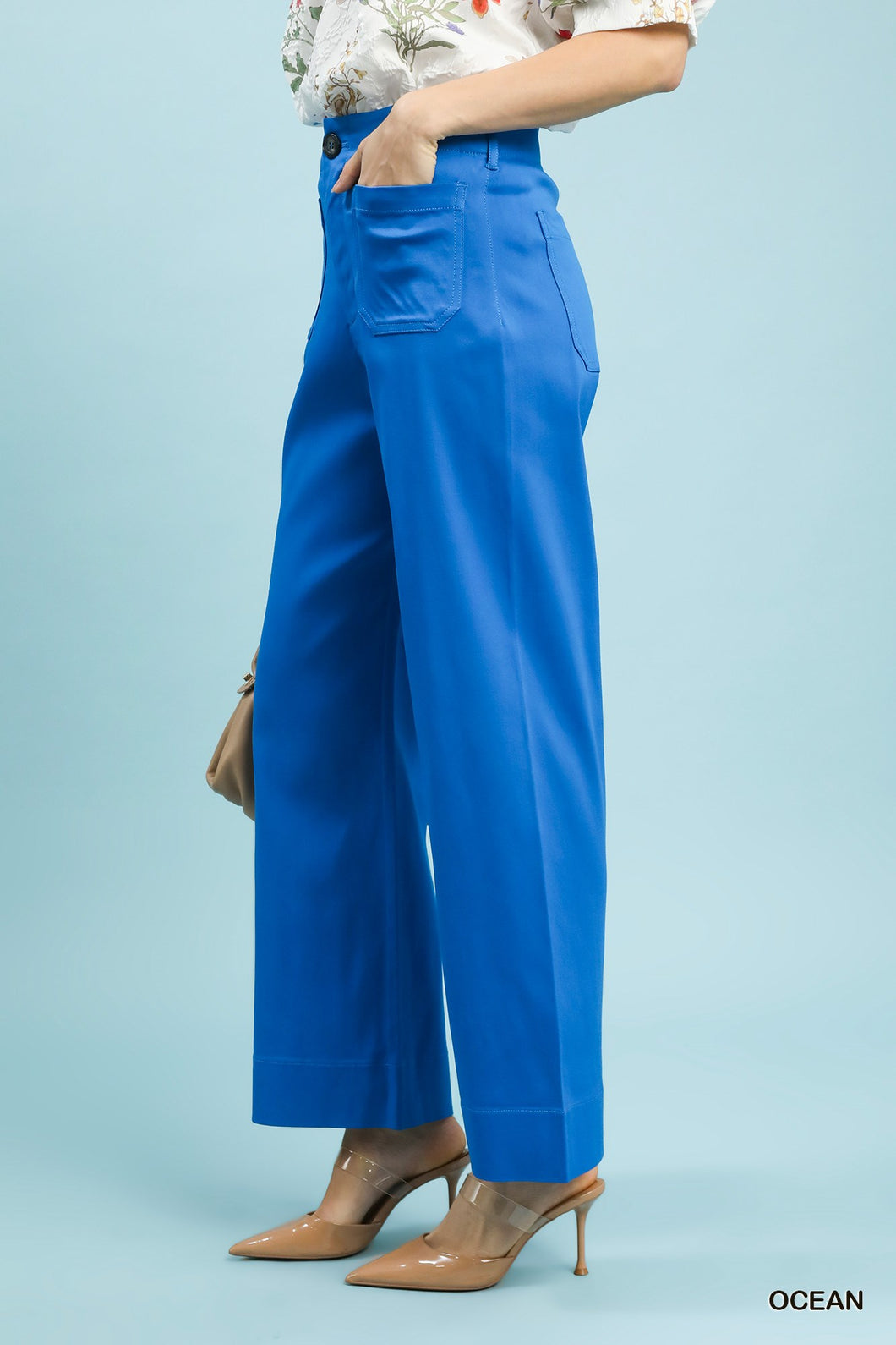 Umgee Button Stretched Pants in Ocean Blue $68