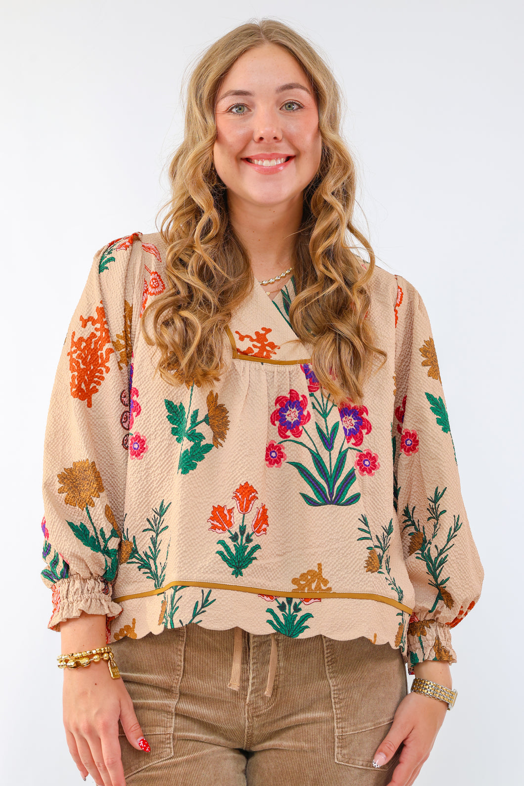 Floral Print Textured Fabric Collared Top in Black $72Key Features• Textured Material• Floral Print• Not LinedFit & Model Notes• Model is 6'0" and is wearing a Medium.• All Measurements are approximate.Fabric Contents• 100% Polyester
