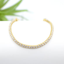 This year, tennis bracelets are back as a stylishly elegant addition to any jewelry wardrobe. You don't have to play tennis to appreciate the beauty and style of these bracelets. This bracelet is made of 18 karat gold plated sterling silver and 3.5mm cubic zirconia stones. It features a fine jewelry style clasp and measures 7.25" in length. $70