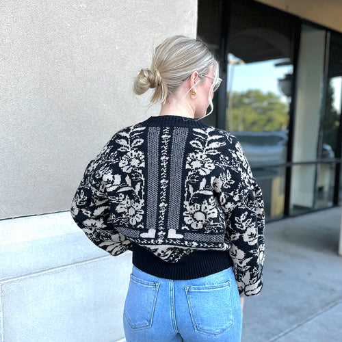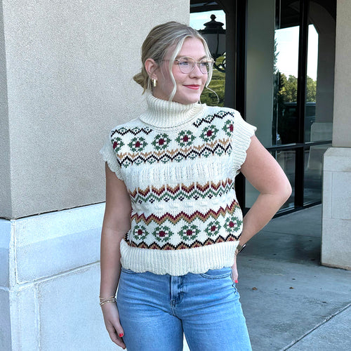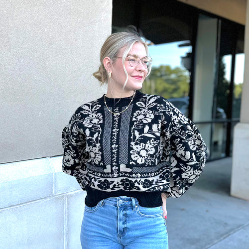 Fair Isle Pattern Long Sleeve Knit Sweater in Ivory