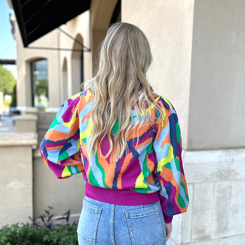 Multicolor Fish Scales Pattern Cardigan in Spring Bloom