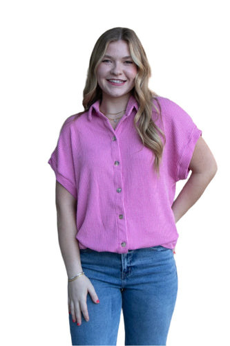 Multicolor Tiered Button Down Cardigan in Pink Combo