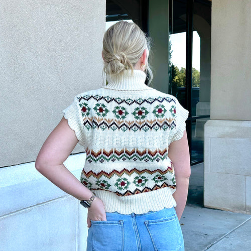 Urban Daisy Western Horseshoe Crochet Knit Ribbed Trim Sweater Vest