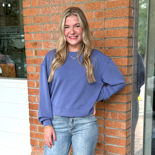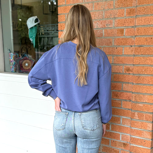 Off Shoulder Fold Over Blushed Knit Sweater in Navy