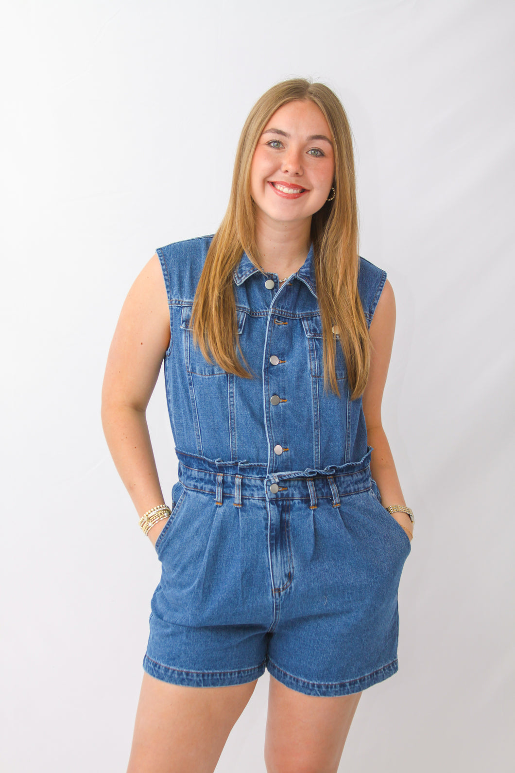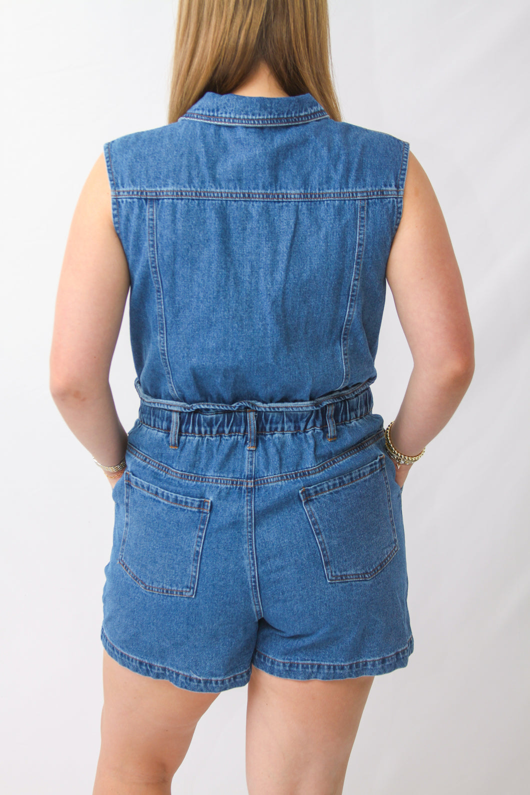 Wide Shoulder Denim Romper