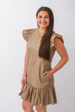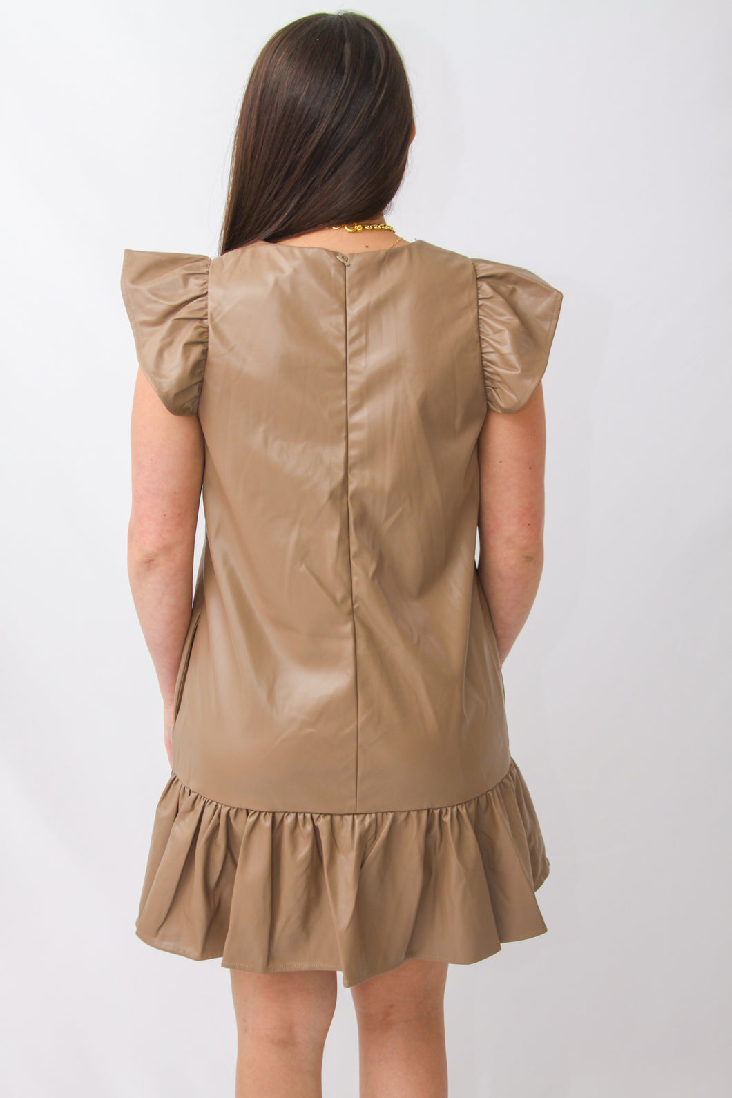FAUX LEATHER RUFFLE SLEEVE MINI DRESS WITH SIDE POCKETS